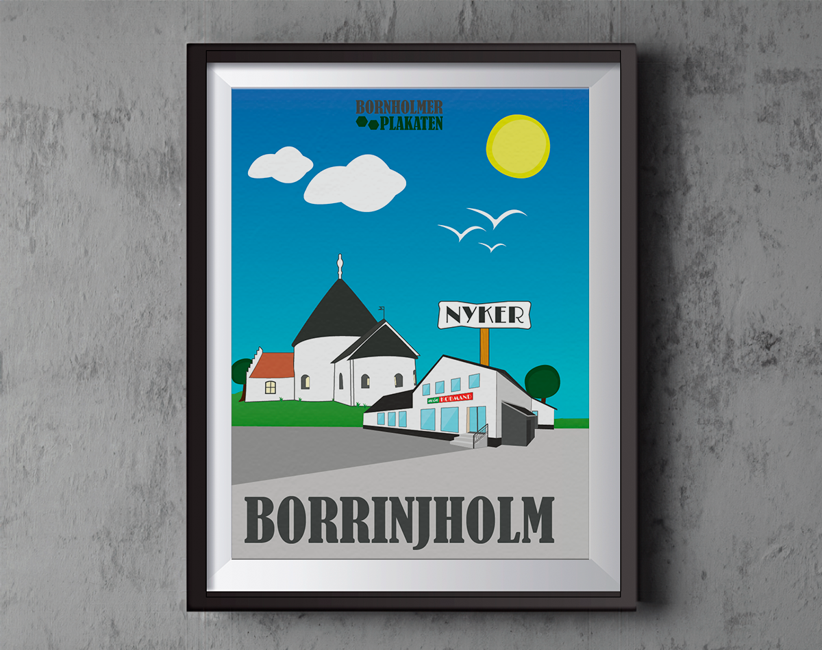 Når du hænger denne plakat op i dit hjem, bringer du en del af Nyker ind i dine omgivelser. Lad den dagligt minde dig om byens fredfyldte stemning og dens fine balance mellem tradition og fornyelse. Plakaten er en smuk hyldest til Bornholms hyggelige landsbyliv, hvor hverdagen finder sin egen rytme.