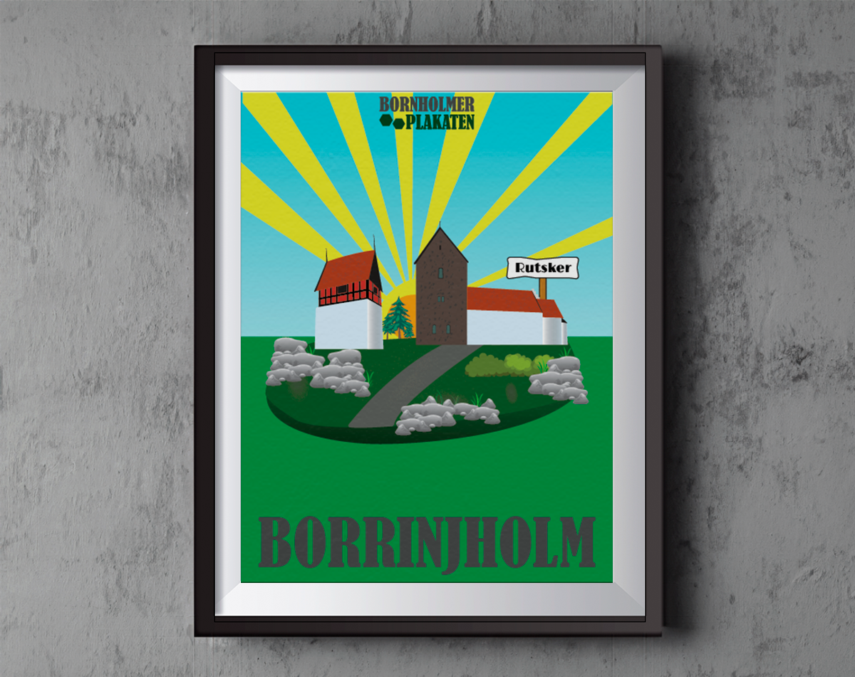 Plakaten bringer en følelse af ro, perspektiv og bornholmsk landidyl ind i dit hjem – perfekt til dig, der elsker kirkearkitektur, natur og det stille liv på landet.